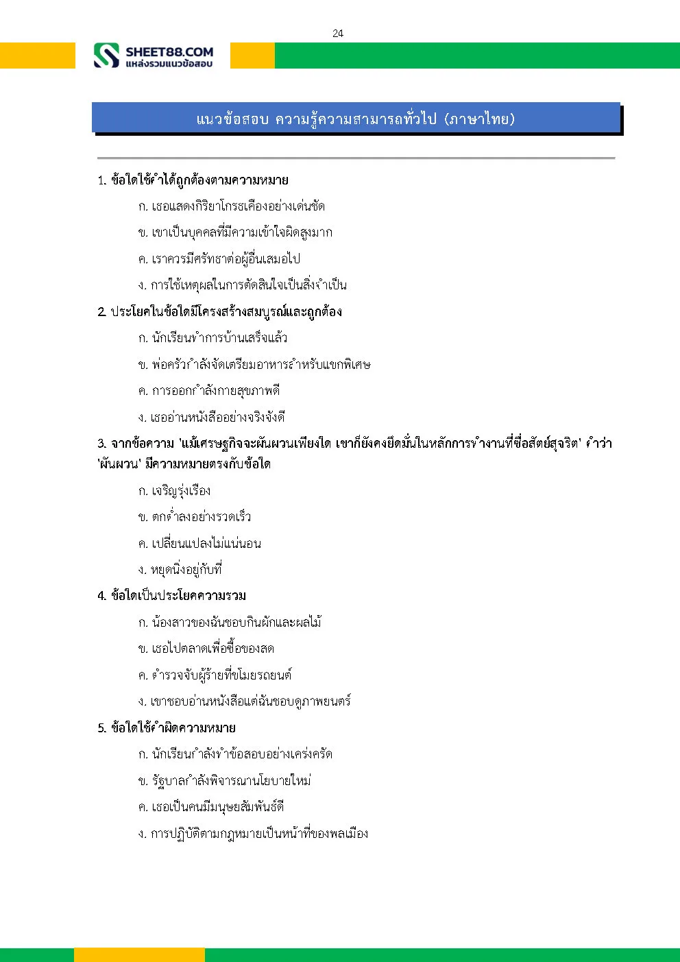*** เอกสารชุดนี้จัดทำขึ้นเพื่อการศึกษาและการเตรียมสอบเท่านั้น เนื้อหาเป็นการวิเคราะห์และเก็งแนวข้อสอบโดยผู้เรียบเรียง มิใช่ข้อสอบจริงจากหน่วยงาน ***