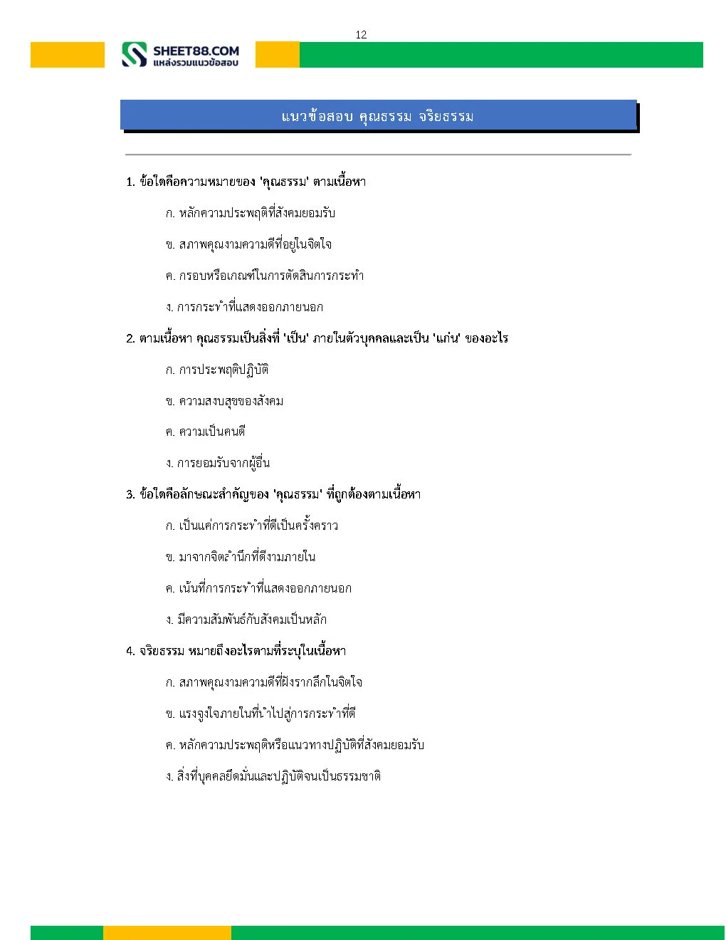 – ความรู้เกี่ยวกับคุณธรรม และจริยธรรม